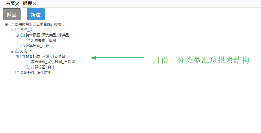 根据Y方向分组字段的不同,可以将交叉报表分为系统组织交叉报表、年月交叉报表、外键交叉报表。