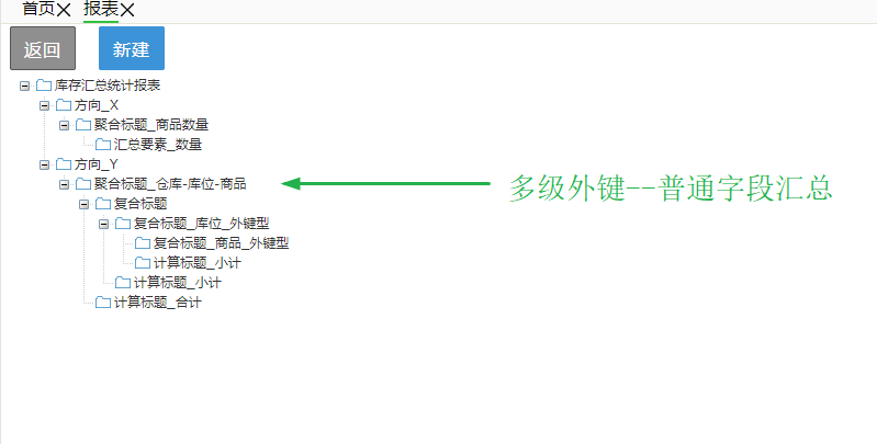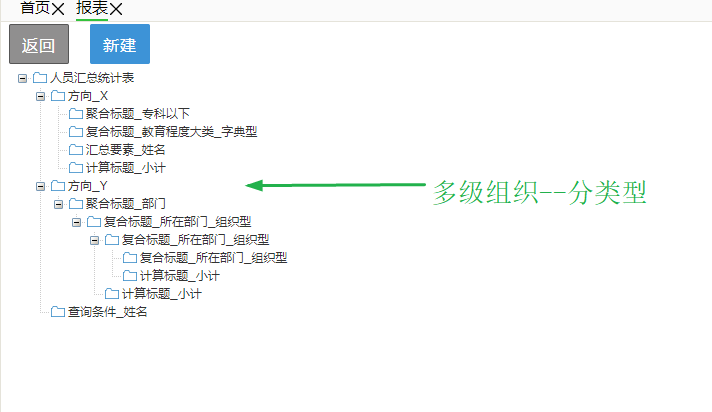 5、X_方向聚合标题分三种:一是起到单纯的分组作用,不参与实质sql统计,在其下级新建复合标题,这样就是两层表头了;