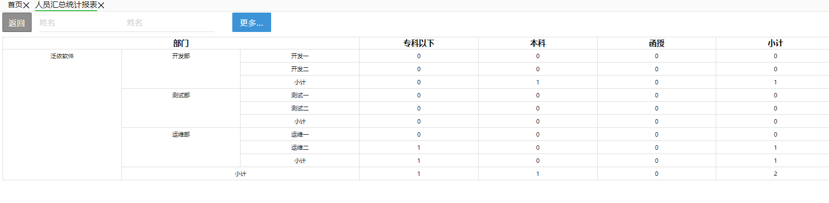 三是对字典标识字段的不同值的合计,如将学历字典标识中的高中、大学合起来统计为一个聚合标题,将大专、小学合起来